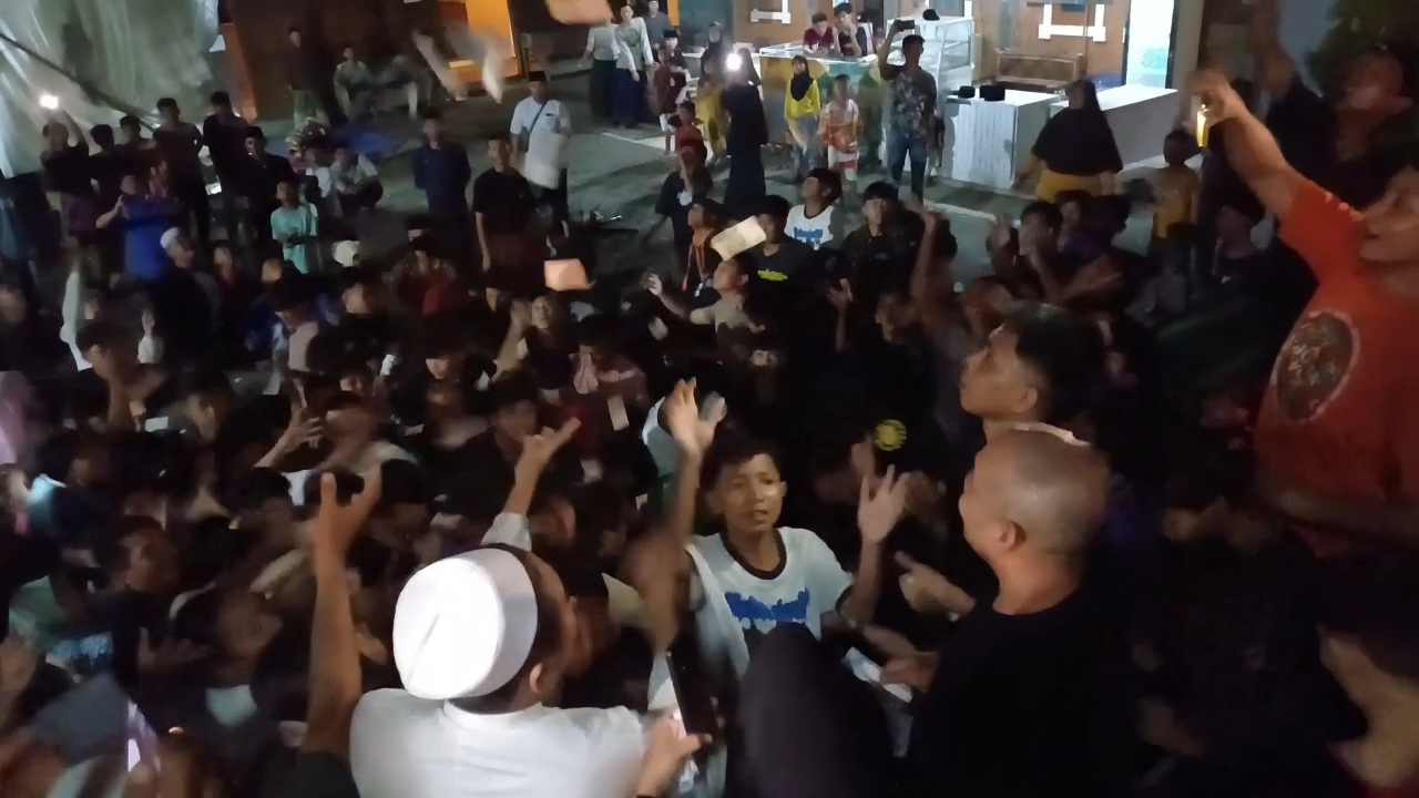 Keramaian memuncak saat pimpinan padepokan, Ustaz Ujang Busthomi, keluar dari kediamannya sambil membawa sejumlah uang. Tanpa dikomando, warga langsung merapat dan berkerumun di halaman padepokan.