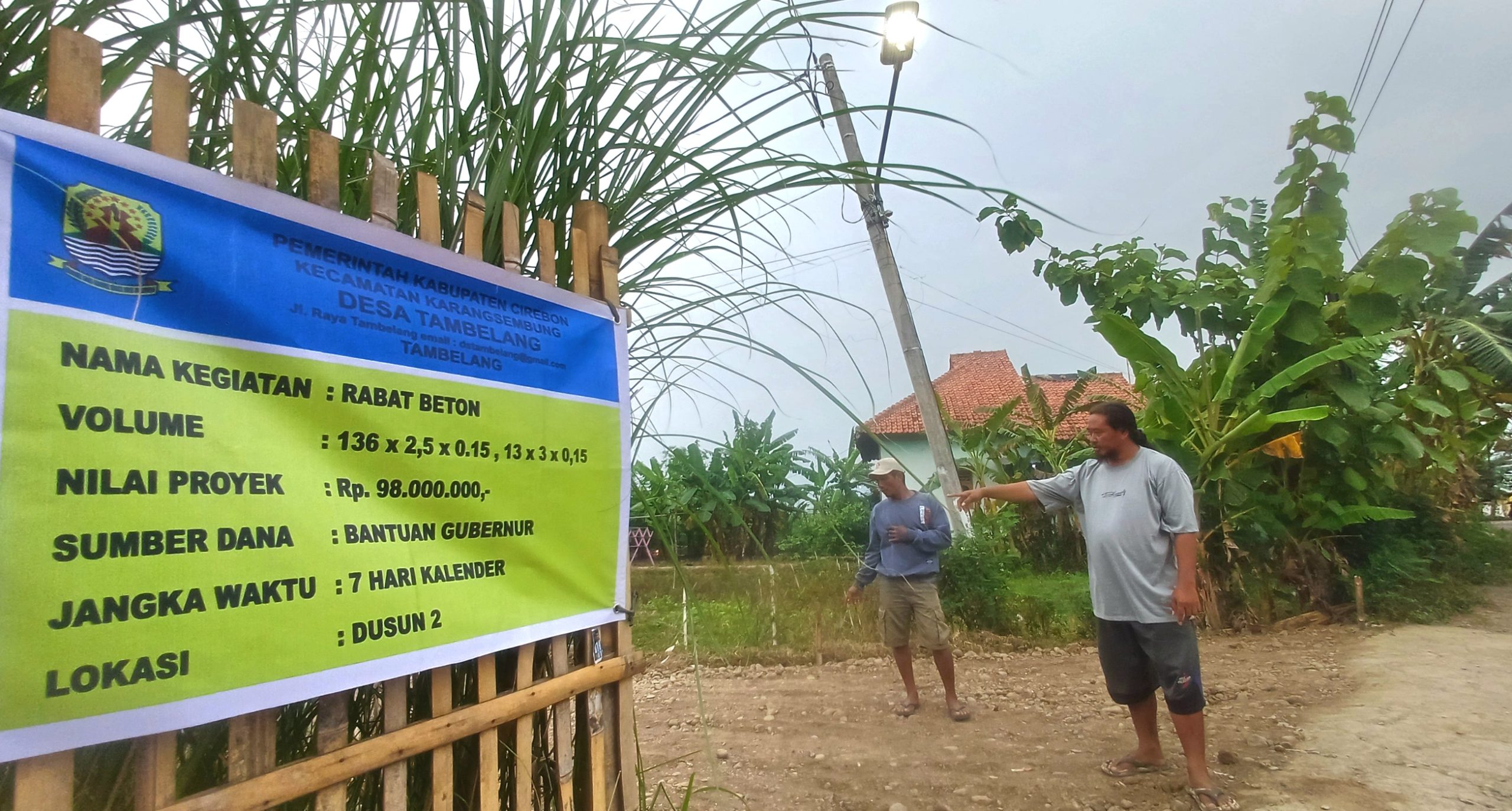 CIREBON – Pekerjaan proyek pembangunan jalan rabat beton di Blok 2, Desa Tambelang, Kecamatan Karangsembung, Kabupaten Cirebon, menuai sorotan masyarakat. Proyek senilai Rp98 juta yang bersumber dari Bantuan Gubernur (Banprov) Jawa Barat itu diduga dijalankan tanpa transparansi dan tanpa melibatkan warga setempat.